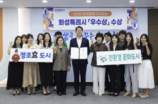 [NWS¹æ¼Û=Çѽ¸ñ ±âÀÚ]È­¼ºÆ¯·Ê½Ã°¡ ¹®È­Ã¼À°°ü±¤ºÎ ÈÄ¿ø°ú »ç´Ü¹ýÀÎ Çѱ¹¹®È­°¡Ä¡¿¬±¸Çùȸ ÁÖÃÖ ¡®2025 Çѱ¹¹®È­°¡Ä¡´ë»ó¡¯¿¡¼­ ¡®¿ì¼ö»ó¡¯À» ¼ö»óÇß´Ù°í 24ÀÏ ¹àÇû´Ù. ¿ÃÇØ·Î 6ȸ°¸¦ ¸Â´Â Çѱ¹¹®È­°¡Ä¡´ë»óÀº ¹®È­»ç¾÷À» ÅëÇÑ ´Ù¾çÇÑ¡¦