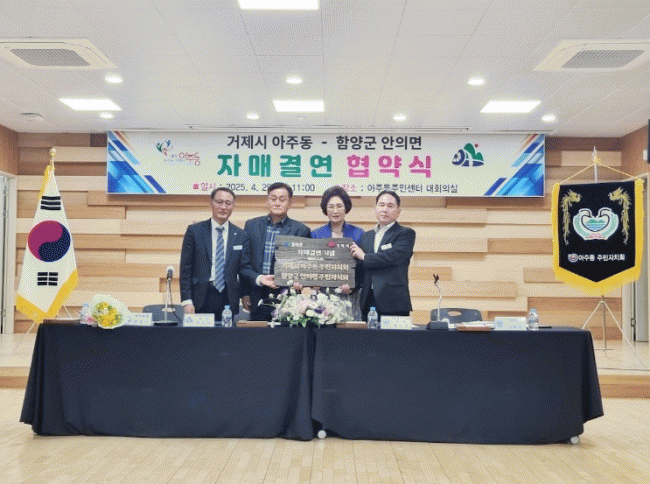 [NWS¹æ¼Û=ÇãÀº¼­ ±âÀÚ]ÇԾ籺 ¾ÈÀǸé ÁÖ¹ÎÀÚġȸ¿Í °ÅÁ¦½Ã ¾ÆÁÖµ¿ ÁÖ¹ÎÀÚġȸ´Â Áö³­ 4¿ù 29ÀÏ °ÅÁ¦½Ã ¾ÆÁÖµ¿Áֹμ¾ÅÍ 2Ãþ ´ëȸÀǽǿ¡¼­ ÁֹΠº¹Áö ÁõÁø°ú ÁÖ¹ÎÀÚÄ¡ Ȱ¼ºÈ­¸¦ À§ÇÑ »óÈ£ ÀڸŰῬÀ» ü°áÇß´Ù. À̹ø Çù¾àÀº µµ³ó °£ »ó»ý°ú¡¦