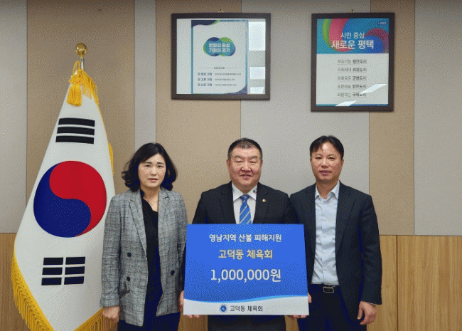 [NWS¹æ¼Û=Çѽ¸ñ ±âÀÚ]ÆòÅýà °í´öµ¿ üÀ°È¸´Â 29ÀÏ ¿ÀÀü ¿µ³²Áö¿ª¿¡¼­ ¹ß»ýÇÑ ´ëÇü »êºÒ ÇÇÇØº¹±¸ Áö¿øÀ» À§ÇØ ¼º±Ý 100¸¸ ¿øÀ» °æ±âµµ»çȸº¹Áö°øµ¿¸ð±Ýȸ¿¡ ±âºÎÇß´Ù. À̳¯ ±âºÎµÈ ¼º±ÝÀº °æ±âµµ»çȸº¹Áö°øµ¿¸ð±Ýȸ¸¦ ÅëÇØ ¿µ³²Áö¿ª ¡¦