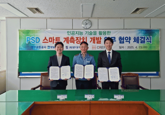 [NWS¹æ¼Û=Çѽ¸ñ ±âÀÚ] ´ë±¸±³Åë°ø»ç´Â Áö³­ 23ÀÏ ¹®¾çÂ÷·®±âÁö ½ÅÈ£ÀüÀÚ»ç¾÷¼Ò 3Ãþ »óȲ½Ç¿¡¼­ ¡®AI(ÀΰøÁö´É) ±â¼úÀ» Ȱ¿ëÇÑ ½Â°­Àå¾ÈÀü¹® ½º¸¶Æ® °èÃø ÀåÄ¡ °³¹ß¡¯À» À§ÇØ 3ÀÚ °£ ¾÷¹«Çù¾àÀ» ü°áÇß´Ù. Çù¾à¿¡´Â °ø»ç¸¦ Æ÷ÇÔÇØ °è¸í¡¦