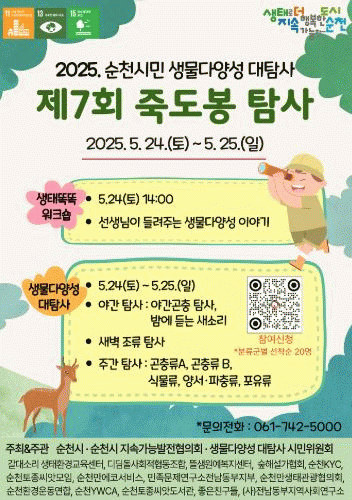[NWS¹æ¼Û=Çѽ¸ñ ±âÀÚ]¼øÃµ½Ã´Â ¼øÃµ½Ã Áö¼Ó°¡´É¹ßÀüÇùÀÇȸ¿Í ÇÔ²² ¿À´Â 5¿ù 2ÀϱîÁö ¡®¼øÃµ½Ã¹Î »ý¹°´Ù¾ç¼º ´ëŽ»ç¡¯ Âü°¡ÀÚ¸¦ ¸ðÁýÇÑ´Ù°í ¹àÇû´Ù. 2019³âºÎÅÍ ÁøÇàµÇ¾î Á¦7ȸ¸¦ ¸ÂÀÌÇÑ ¡®¼øÃµ½Ã¹Î »ý¹°´Ù¾ç¼º ´ëŽ»ç¡¯´Â 5¿ù 22ÀÏ »ý¡¦