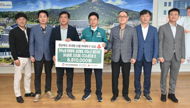 [NWS¹æ¼Û=Çѽ¸ñ ±âÀÚ]Çѱ¹³ëÃÑ °æºÏº»ºÎ´Â 28ÀÏ °æºÏµµÃ»À» ¹æ¹®ÇØ, ÃÊ´ëÇü »êºÒ·Î ÇÇÇØ¸¦ º» Áö¿ª ÁֹεéÀ» µ½±â À§ÇØ ¼º±Ý 881¸¸¿øÀ» °æºÏ»çȸº¹Áö°øµ¿¸ð±Ýȸ¿¡ Àü´ÞÇß´Ù. À̹ø ¼º±ÝÀº Çѱ¹³ëÃÑ °æºÏº»ºÎ ¼Ò¼Ó ±Ù·ÎÀÚ¿Í ´Üü¿¡¼­ ¸ð±Ý¡¦