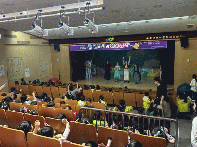 [NWS¹æ¼Û=Çѽ¸ñ ±âÀÚ]¿ïÁÖ±ºÀ°¾ÆÁ¾ÇÕÁö¿ø¼¾ÅͰ¡ Áö³­ 28Àϰú 29ÀÏ ÀÌÆ²°£ ¿ïÁÖ±º ³» ¾î¸°ÀÌÁý¿¡ Àç¿ø ÁßÀÎ 2~5¼¼ ¿µÀ¯¾Æ¸¦ ´ë»óÀ¸·Î ¹ÂÁöÄà ¡®¾Ë¶óµò°ú ¿ä¼ú·¥ÇÁ¡¯ °ø¿¬À» ¼ºÈ²¸®¿¡ °³ÃÖÇß´Ù. À̹ø °ø¿¬Àº ¿µÀ¯¾Æµé¿¡°Ô Ä£¼÷ÇÑ À̾߱⸦¡¦
