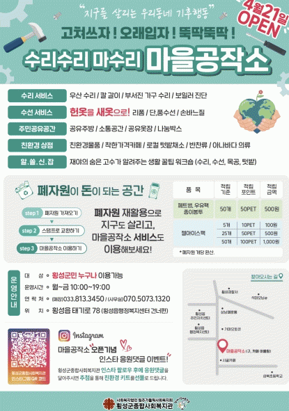[»çȸ] Ⱦ¼º±ºÁ¾ÇÕ»çȸº¹Áö°ü, ģȯ°æ Ä¿¹Â´ÏƼ °ø°£ ¡®¸¶À»°øÀÛ¼Ò¡¯ °³¼Ò |2025. 04.29