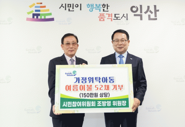 [NWS¹æ¼Û=Çѽ¸ñ ±âÀÚ]ÀÍ»ê½Ã´Â ½Ã¹ÎÂü¿©À§¿øÈ¸ Á¶¹æ¿µ À§¿øÀåÀÌ Áö¿ª ¾Æµ¿µéÀÇ °Ç°­ÇÑ ¿©¸§³ª±â¸¦ Áö¿øÇϰíÀÚ ¿©¸§ ÀÌºÒ 52並 ±âºÎÇß´Ù°í 29ÀÏ ¹àÇû´Ù. À̳¯ ±âŹµÈ À̺ÒÀº À§Å¹°¡Á¤¿¡¼­ »ýȰÇÏ´Â ¾Æµ¿µéÀÌ ÄèÀûÇÑ È¯°æ¿¡¼­ »ýȰÇÒ ¡¦