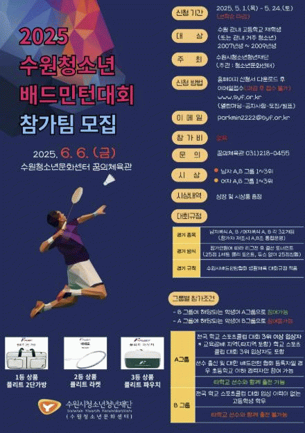 [»çȸ] ¼ö¿ø½Ãû¼Ò³âû³âÀç´Ü '2025. ¼ö¿ø û¼Ò³â ¹èµå¹ÎÅÏ ´ëȸ' Âü°¡ÆÀ ¸ðÁý |2025. 04.29