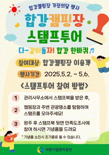 [NWS¹æ¼Û=Çѽ¸ñ ±âÀÚ] ¼¼Á¾Æ¯º°ÀÚÄ¡½Ã½Ã¼³°ü¸®°ø´ÜÀº °¡Á¤ÀÇ ´ÞÀ» ¸Â¾Æ 5¿ù 2ÀϺÎÅÍ 6ÀϱîÁö ½Ã¹ÎµéÀÇ ¿©°¡ ¸¸Á·µµ Á¦°í¿Í °¡Á· ´ÜÀ§ À̿밴 À¯Ä¡¸¦ À§ÇØ ÇÕ°­Ä·ÇÎÀå°ú Àü¿ù»ê±¹¹Î¿©°¡Ä·ÇÎÀå¿¡¼­ üÇèÇü ÇÁ·Î±×·¥À» ¿î¿µÇÑ´Ù°í ¹àÇû´Ù. ¡¦