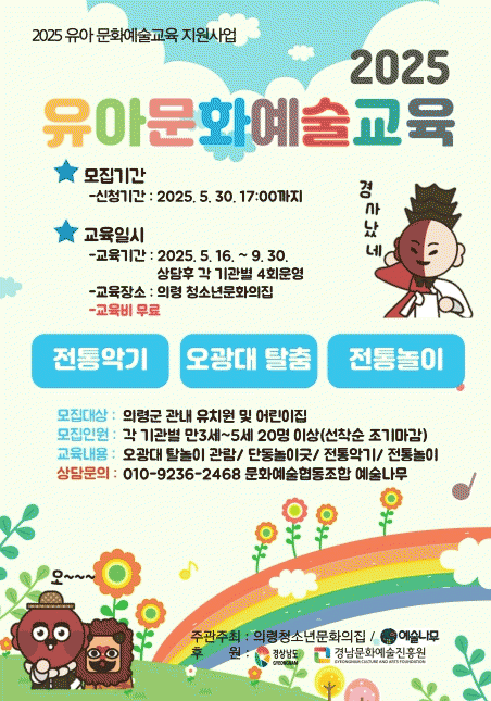 [»çȸ] ÀÇ·Éû¼Ò³â¹®È­ÀÇÁý, À¯¾Æ¹®È­¿¹¼ú±³À° Áö¿ø»ç¾÷ °ø¸ð ¼±Á¤ |2025. 04.29