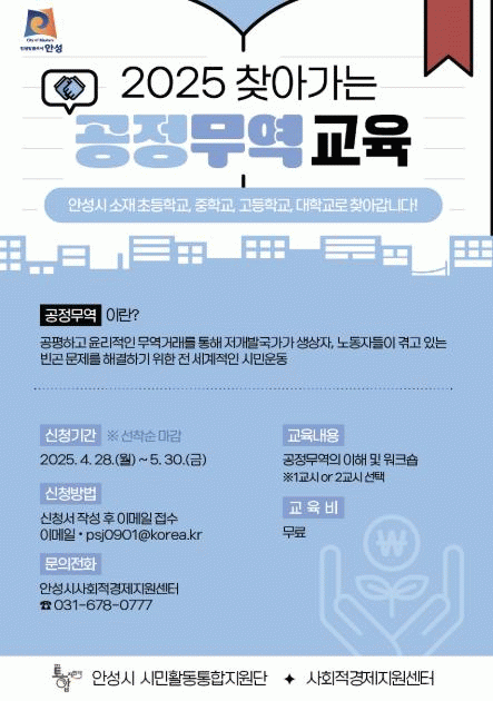 [NWS¹æ¼Û=Çѽ¸ñ ±âÀÚ]¾È¼º½Ã°¡ °ü³» ¹Ì·¡¼¼´ë¸¦ ´ë»óÀ¸·Î °øÁ¤¹«¿ªÀÇ Á߿伺À» ¾Ë¸®°í À±¸®Àû ¼Òºñ ½À°üÀ» Çü¼ºÇϱâ À§ÇÑ ¡®2025³â ã¾Æ°¡´Â °øÁ¤¹«¿ª ±³À°¡¯À» 5¿ùºÎÅÍ 10¿ù±îÁö ¿î¿µÇÑ´Ù. ã¾Æ°¡´Â °øÁ¤¹«¿ª ±³À°Àº Áö¿ª ³» ÃÊ¡¤Áß¡¤¡¦