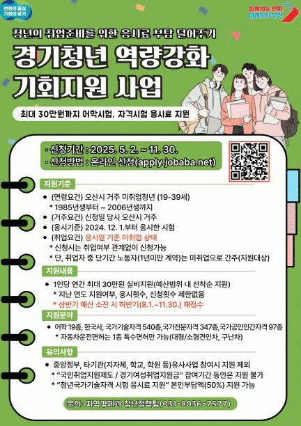 [NWS¹æ¼Û=Çѽ¸ñ ±âÀÚ]¿À»ê½Ã°¡ ¿À´Â 5¿ù 2ÀϺÎÅÍ ¹ÌÃë¾÷ û³âµéÀÇ Ãë¾÷ ¿ª·® °­È­¸¦ À§ÇØ ¡®°æ±âû³â ¿ª·®°­È­ ±âȸÁö¿ø »ç¾÷¡¯À» º»°Ý ½ÃÇàÇÑ´Ù. À̹ø »ç¾÷Àº ¾îÇÐ ¹× ÀڰݽÃÇè ÀÀ½Ã·á¸¦ ¿¬°£ ÃÖ´ë 30¸¸ ¿ø±îÁö ½Çºñ Áö¿øÇÏ´Â Á¦µµ·Î,¡¦