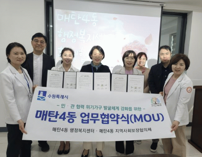 [NWS¹æ¼Û=Çѽ¸ñ ±âÀÚ]¼ö¿ø½Ã ¿µÅ뱸 ¸Åź4µ¿ Áö¿ª»çȸº¸ÀåÇùÀÇü´Â Áö³­ 28ÀÏ, S¼­¿ïº´¿ø°ú °Ç°­ÇÑ Áö¿ª»çȸ ºÐÀ§±â Á¶¼º°ú »êµå·¡¹Ì °Ç°­º¹Áö ¿ïŸ¸® Á¶¼ºÀ» À§ÇÑ ¾÷¹«Çù¾àÀ» ü°áÇß´Ù. ¸Åź4µ¿ ÇàÁ¤º¹Áö¼¾ÅÍ, Áö¿ª»çȸº¹ÁöÇùÀÇü, S¼­¡¦