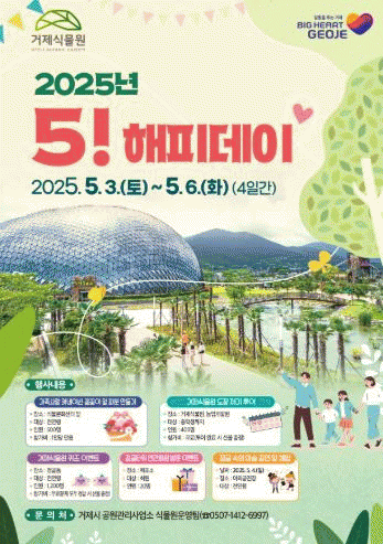 [NWS¹æ¼Û=Çѽ¸ñ ±âÀÚ]°ÅÁ¦½Ä¹°¿øÀº °¡Á¤ÀÇ ´ÞÀ» ¸Â¾Æ ¿À´Â 5¿ù 3ÀϺÎÅÍ 5¿ù 6ÀϱîÁö 4Àϰ£ ¡®2025³â ¿À!ÇØÇǵ¥ÀÌ¡¯Çà»ç¸¦ °³ÃÖÇÑ´Ù. ¿ÃÇØ Çà»ç´Â °ÅÁ¦½Ä¹°¿ø¿¡¼­ ¿­¸®´Â ¼¼ ¹øÂ° ¡®¿À!ÇØÇǵ¥ÀÌ¡¯·Î, °¡Á·°ú ÇÔ²²ÇÏ´Â µû¶æÇÑ ½Ã°£À» À§ÇØ¡¦