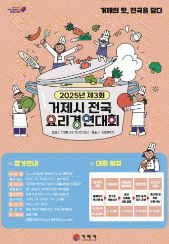 [NWS¹æ¼Û=Çѽ¸ñ ±âÀÚ]°ÅÁ¦½Ã´Â ¡®2025³â Á¦3ȸ °ÅÁ¦½Ã Àü±¹ ¿ä¸®°æ¿¬´ëȸ¡¯Âü°¡ÀÚ¸¦ ¿À´Â 5¿ù 26ÀϱîÁö ¸ðÁýÇÑ´Ù°í ¹àÇû´Ù. ¿ÃÇØ ¼¼ ¹øÂ°¸¦ ¸Â´Â °ÅÁ¦½Ã Àü±¹ ¿ä¸®´ëȸ´Â ¡®°ÅÁ¦ÀÇ ¸À, Àü±¹À» ´ã´Ù¡¯¶ó´Â ½½·Î°ÇÇÏ¿¡ °ÅÁ¦¿¡¼­ »ý»êµÇ´Â¡¦