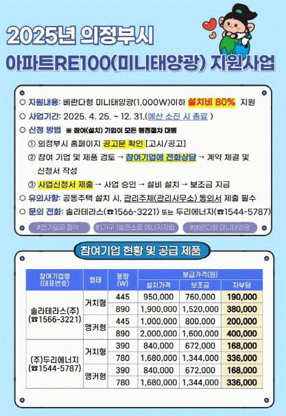 [NWS¹æ¼Û=Çѽ¸ñ ±âÀÚ]ÀÇÁ¤ºÎ½Ã´Â ģȯ°æ ¿¡³ÊÁö È®»ê°ú ½Ã¹ÎµéÀÇ ¿¡³ÊÁö ºñ¿ë Àý°¨À» À§ÇØ, 12¿ù±îÁö ¡®2025³â ¾ÆÆÄÆ®RE100(¹Ì´Ïž籤) Áö¿ø»ç¾÷¡¯À» ÃßÁøÇÑ´Ù. ½Ã´Â ÀÌ »ç¾÷À» ÅëÇØ °øµ¿ÁÖÅðú ´Üµ¶ÁÖÅÃÀÇ º£¶õ´Ù ³­°£ ¶Ç´Â ¿Á»ó¿¡ 1¡¦