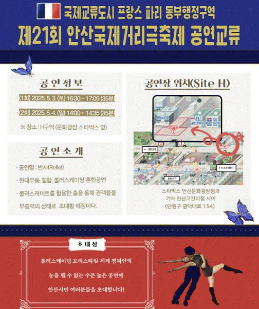 [NWS¹æ¼Û=Çѽ¸ñ ±âÀÚ]¾È»ê½Ã´Â ´ÙÀ½ ´Þ 3ÀϺÎÅÍ 4ÀϱîÁö ÀÌÆ²°£ ¡®Á¦21ȸ ¾È»ê±¹Á¦°Å¸®±ØÃàÁ¦¡¯¿¡ °ø½Ä ÃÊûµÈ ÇÁ¶û½º ÆÄ¸® µ¿ºÎÇàÁ¤±¸¿ª ¿¹¼ú°ø¿¬´Ü°ú °ø¿¬ ±³·ù¸¦ ÁøÇàÇÑ´Ù°í 29ÀÏ ¹àÇû´Ù. ÇÁ¶û½º ÆÄ¸® µ¿ºÎÇàÁ¤±¸¿ªÀº ¹®È­, ¿¹¼ú ºÐ¡¦
