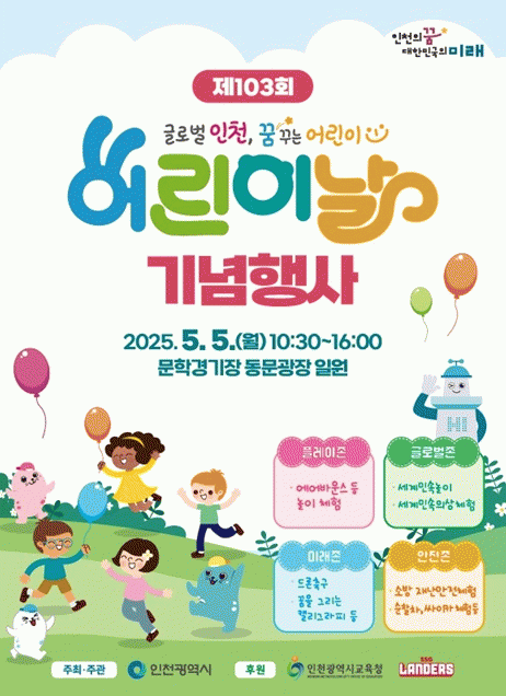 [NWS¹æ¼Û=Çѽ¸ñ ±âÀÚ]ÀÎõ±¤¿ª½Ã´Â 5¿ù 5ÀÏ ¹®Çаæ±âÀå µ¿¹® ±¤Àå¿¡¼­ ¡®Á¦103ȸ ¾î¸°À̳¯ ±â³äÇà»ç¡¯¸¦ °³ÃÖÇÑ´Ù°í ¹àÇû´Ù. À̹ø Çà»ç´Â ¡®±Û·Î¹ú ÀÎõ, ²Þ²Ù´Â ¾î¸°ÀÌ¡¯¸¦ ÁÖÁ¦·Î, ¾î¸°ÀÌ¿Í °¡Á·ÀÌ ÇÔ²² Áñ±æ ¼ö ÀÖ´Â ´Ùä·Î¿î ÇÁ·Î±×¡¦