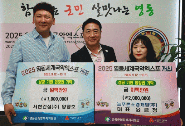 [NWS¹æ¼Û=Çѽ¸ñ ±âÀÚ]ÃæºÏ ¿µµ¿±ºÀº 29ÀÏ ¼­Çö°Ç¼³(ÁÖ) ¾ç¿µÈ£ ´ëÇ¥¿Í ´ÃǪ¸¥Á¶°æ°³¹ß(ÁÖ) À±±ÝÁ¤ ´ëÇ¥ ºÎºÎ°¡ 2025 ¿µµ¿¼¼°è±¹¾Ç¿¢½ºÆ÷ÀÇ ¼º°øÀ» ±â¿øÇϸç ÀÔÀå±Ç ±¸ÀÔ±Ý 300¸¸¿øÀ» ±âŹÇß´Ù°í ¹àÇû´Ù. À̳¯ ¾ç ´ëÇ¥¿Í À± ´ëÇ¥´Â °¢°¢¡¦