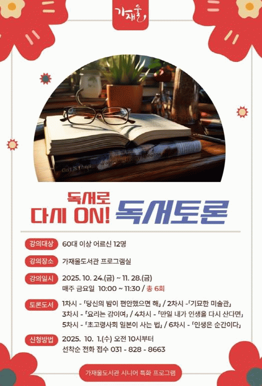 [»çȸ] ÀÇÁ¤ºÎ°¡Àç¿ïµµ¼­°ü, µðÁöÅРȰ¿ë°ú µ¶¼­·Î Ȱ·Â ã´Â ¾î¸£½Å ÇÁ·Î±×·¥ ¿î¿µ |2025. 09.24