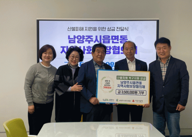 [NWS¹æ¼Û=Çѽ¸ñ ±âÀÚ]³²¾çÁֽô Áö³­ 25ÀÏ, ³²¾çÁֽà À¾¸éµ¿ Áö¿ª»çȸº¸ÀåÇùÀÇü°¡ ¿µ³²Áö¿ª »êºÒ ÇÇÇØ ÀÌÀç¹ÎÀ» µ½±â À§ÇÑ ¼º±Ý 350¸¸ ¿øÀ» ³²¾çÁֽú¹ÁöÀç´Ü¿¡ Àü´ÞÇß´Ù°í 28ÀÏ ¹àÇû´Ù. À̹ø ¼º±ÝÀº °¢ À¾¸éµ¿ Áö¿ª»çȸº¸ÀåÇùÀÇü À§¡¦
