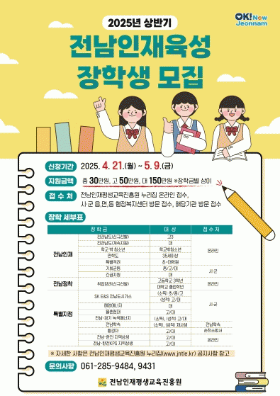 [»çȸ] Àü³²µµ, ÀÎÀçÀ°¼º ÀåÇлý 1õ3¸í ¸ðÁý |2025. 04.28