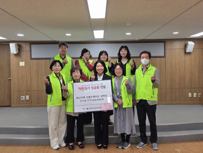 [NWS¹æ¼Û=Çѽ¸ñ ±âÀÚ] ºÎ»ê ºÏ±¸ ¸¸´ö2µ¿ ÇàÁ¤º¹Áö¼¾ÅÍ´Â Áö³­ 25ÀÏ, 2025 ¿µ³²Áö¿ª »êºÒ ÇÇÇØ ¸ð±ÝÀ» À§ÇØ ¸¸´ö2µ¿ Áö¿ª»çȸº¸ÀåÇùÀÇü¿¡¼­ 30¸¸ ¿øÀ» ±âŹÇßÀ¸¸ç, Áö¿ª»çȸº¸ÀåÇùÀÇü ÀÌÀº¼÷ À§¿øÀåÀÌ Ãß°¡·Î 20¸¸ ¿øÀ» ´õ ±âŹÇß´Ù°í¡¦