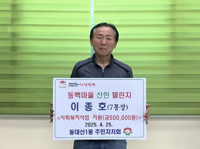 [»çȸ] ºÎ»ê ¼­±¸ µ¿´ë½Å1µ¿ ¡®µ¿¹é¸¶À» ¼±ÇÑ Ã§¸°Áö »ç¾÷¡¯ ´Ù¼¸ ¹øÂ° ÁÖÀÚ 7ÅëÀå ÀÌÁ¾È£ ´Ô |2025. 04.28