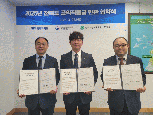 [NWS¹æ¼Û=Çѽ¸ñ ±âÀÚ]ÀüºÏƯº°ÀÚÄ¡µµ´Â 28ÀÏ ±¹¸³³ó»ê¹°Ç°Áú°ü¸®¿ø ÀüºÏÁö¿ø, ÀüºÏƯº°ÀÚÄ¡µµ 4-H¿¬ÇÕȸ¿Í ÇÔ²² °øÀÍÁ÷ºÒ±Ý ³ó¾÷¡¤³óÃÌ °øÀÍÀû °¡Ä¡ Á߿伺 È®»ê ¹× Áؼö»çÇ× È«º¸¸¦ À§ÇÑ ¾÷¹« Çù¾àÀ» ü°áÇß´Ù°í ¹àÇû´Ù. °øÀÍÁ÷ºÒ±ÝÀº¡¦