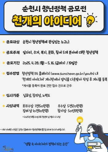 [»çȸ] ¼øÃµ½Ã, û³âÁ¤Ã¥ ¡ºÃµ(ô¸)°³ÀÇ ¾ÆÀ̵ð¾î¡» °ø¸ð |2025. 04.28