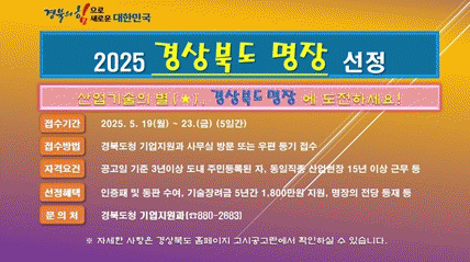 [NWS¹æ¼Û=Çѽ¸ñ ±âÀÚ]°æ»óºÏµµ°¡ ÃÖ°í ±â¼úÀ» °®Ãß°í »çȸ ¹ßÀü¿¡ °øÇåÇÏ¸ç °æºÏÀÇ ¹Ì·¡ ±â¼ú°æÀï·ÂÀ» Ã¥ÀÓÁú ¡®2025³â °æ»óºÏµµ¸íÀ塯À» ¼±Á¤¡¤°ø°³ ¸ðÁýÇÑ´Ù. ¡®°æ»óºÏµµ¸íÀ塯¼±Á¤Àº Áö¿ª »ê¾÷ÇöÀå¿¡¼­ ÃÖ°í ¼öÁØÀÇ ¼÷·Ã ±â¼úÀ» º¸À¯¡¦
