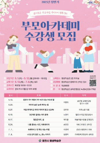 [NWS¹æ¼Û=Çѽ¸ñ ±âÀÚ]¿µÃµ½Ã Æò»ýÇнÀ°üÀº ¡®2025³â »ó¹Ý±â ºÎ¸ð¾ÆÄ«µ¥¹Ì¡¯ ¼ö°­»ýÀ» 5¿ù 1ÀϺÎÅÍ 12ÀϱîÁö ¸ðÁýÇÑ´Ù°í ¹àÇû´Ù. ¡®ºÎ¸ð¾ÆÄ«µ¥¹Ì¡¯´Â ºÎ¸ðµé¿¡°Ô ½ÇÁúÀûÀÎ À°¾Æ ³ëÇϿ츦 Á¦°øÇϰí, ºÎ¸ð·Î¼­ÀÇ ¿ª·®À» °­È­ÇÏ´Â µ¥ µµ¿òÀ»¡¦