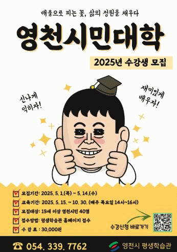 [»çȸ] ¿µÃµ½Ã ¹è¿òÀ¸·Î ÇູÇÑ ¡®¿µÃµ½Ã¹Î´ëÇС¯ 2025³âµµ ¼ö°­»ý ¸ðÁý |2025. 04.28