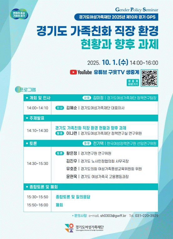 [»çȸ] °æ±âµµ °¡Á·Ä£È­ Á÷Àåȯ°æ ½ÇÅ´Â?¡¦10¿ù 1ÀÏ ¿Â¶óÀÎ Á¤Ã¥Åä·Ðȸ °³ÃÖ |2025. 09.24