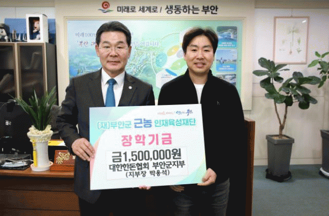 [NWS¹æ¼Û=ÇãÀº¼­ ±âÀÚ]´ëÇÑÇѵ·Çùȸ ºÎ¾È±ºÁöºÎ´Â Áö³­ 25ÀÏ ºÎ¾È±º ±Ù³óÀÎÀçÀ°¼ºÀç´ÜÀ» ã¾Æ ÀåÇÐ±Ý 150¸¸¿øÀ» ±âŹÇß´Ù. 2015³âºÎÅÍ ±âÅ¹ÇØ ¿Â ÀåÇбÝÀÌ ¾î´Àµ¡ 700¸¸¿ø¿¡ À̸£·¶´Ù. (»ç)´ëÇÑÇѵ·Çùȸ ºÎ¾È±ºÁöºÎ´Â µÅÁöÀÇ À⳿¡¦