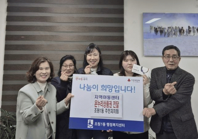 [NWS¹æ¼Û=Çѽ¸ñ ±âÀÚ]¼ö¿ø½Ã Àå¾È±¸ Á¶¿ø1µ¿ ÁÖ¹ÎÀÚġȸ´Â Áö³­ 10ÀÏ ¿¬¸»À» ¸Â¾Æ °ü³» Áö¿ª¾Æµ¿¼¾ÅÍ 3°÷¿¡ °¢ 15¸¸ ¿ø¾¿ ÃÑ 45¸¸ ¿øÀÇ ¿Â´©¸®»óǰ±ÇÀ» Àü´ÞÇß´Ù. Á¶¿ø1µ¿ ÁÖ¹ÎÀÚġȸ´Â Áö¿ª ¾Æµ¿ º¹Áö Çâ»óÀ» À§ÇØ Áö¿ª¾Æµ¿¼¾Å͸¦ ´ë»ó¡¦