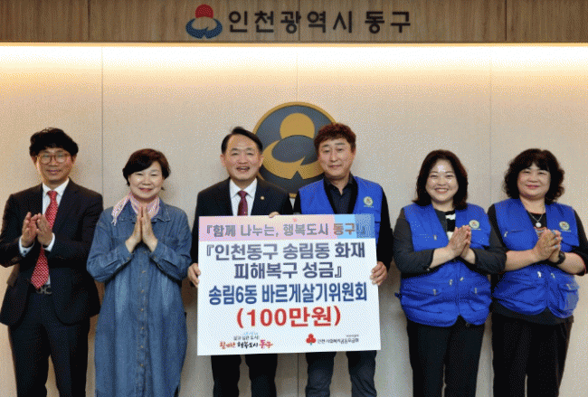 [NWS¹æ¼Û=Çѽ¸ñ ±âÀÚ]ÀÎõ µ¿±¸´Â ¼Û¸²6µ¿ ¹Ù¸£°Ô»ì±âÀ§¿øÈ¸(ȸÀå ÇѹüÈñ)°¡ ¼Û¸²µ¿ È­Àç ÇÇÇØ º¹±¸¸¦ À§ÇØ ¼º±Ý 100¸¸¿øÀ» Áö³­ 24ÀÏ ±âŹÇß´Ù°í ¹àÇû´Ù. À̹ø ±âºÎ´Â È­Àç·Î ¾î·Á¿òÀ» °Þ°í ÀÖ´Â ÀÌ¿ôµé¿¡°Ô ¿ÂÁ¤À» ÀüÇϰí, ´õºÒ¾î »ç¡¦