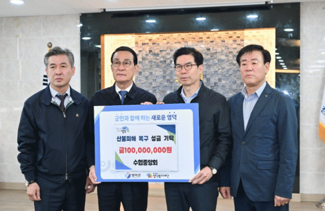 [NWS¹æ¼Û=Çѽ¸ñ ±âÀÚ]ÇàÁ¤¾ÈÀüºÎ »êÇÏ Áö¹æÀçÁ¤ Àü¹®±â°üÀÎ Çѱ¹Áö¹æÀçÁ¤°øÁ¦È¸´Â Áö³­ 24ÀÏ ±â·ÏÀûÀÎ »êºÒ·Î Å« ÇÇÇØ°¡ ¹ß»ýÇÑ ¿µ´ö±ºÀ» ã¾Æ Ưº°Àç³­Áö¿ª ÀçÇØº¹±¸ ÀçÁ¤Áö¿ø±Ý 5,600¸¸ ¿øÀ» Àü´ÞÇß´Ù. Çѱ¹Áö¹æÀçÁ¤°øÁ¦È¸´Â Àü±¹ ÀÚ¡¦