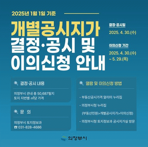 [NWS¹æ¼Û=Çѽ¸ñ ±âÀÚ]ÀÇÁ¤ºÎ½Ã´Â 2025³â 1¿ù 1ÀÏ ±âÁØÀ¸·Î »êÁ¤µÈ °³º°°ø½ÃÁö°¡¸¦ 4¿ù 30ÀÏ °áÁ¤?°ø½ÃÇÑ´Ù. ½Ã´Â Áö³­ 22ÀÏ ¡®2025³â Á¦2ȸ ÀÇÁ¤ºÎ½Ã ºÎµ¿»ê°¡°Ý°ø½ÃÀ§¿øÈ¸¡¯¸¦ ¿­°í °³º°°ø½ÃÁö°¡ 5¸¸687ÇÊÁö ¹× ÀǰßÀÌ Á¦ÃâµÈ 6ÇÊÁö¸¦¡¦