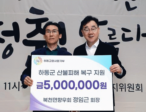 [NWS¹æ¼Û=Çѽ¸ñ ±âÀÚ] 25ÀÏ ¿­¸° Çϵ¿±º ºÏõ¸é °æ·ÎÀ§¾È ÀÜÄ¡¿¡¼­ Á¤ÀÓ±Ù ÀçºÎ ºÏõ¸é Çâ¿ìȸÀå°ú Á¤ÀDZ¤ ÀçºÎ ºÏõ¸é Á÷ÀüȸÀåÀÌ °¢°¢ 5¹é¸¸ ¿ø, 2¹é¸¸ ¿øÀÇ °íÇâ»ç¶û±âºÎ±ÝÀ» Àü´ÞÇß´Ù. À̾, °°Àº ³¯ ¿­¸° ³ó°¡ÁֺθðÀÓ ¿­¹«±è¡¦