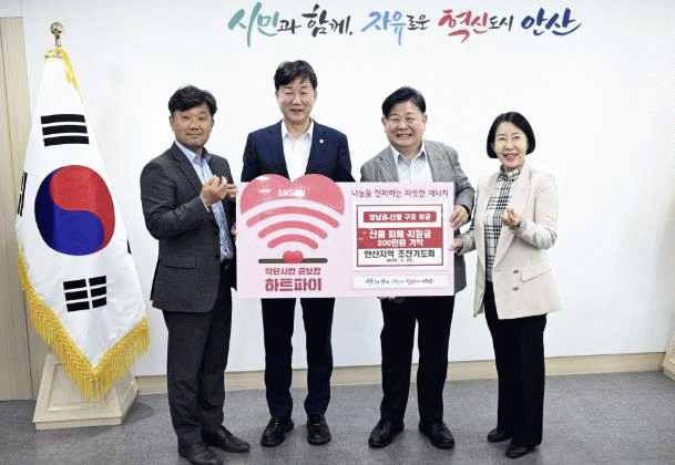 [NWS¹æ¼Û=Çѽ¸ñ ±âÀÚ]¾È»ê½Ã´Â Áö³­ 25ÀÏ ¾È»êÁö¿ª Á¶Âù±âµµÈ¸·ÎºÎÅÍ ¿µ³²±Ç »êºÒ ÀçÇØ º¹±¸¸¦ À§ÇÑ ¼º±Ý 200¸¸ ¿øÀ» ±âŹ¹Þ¾Ò´Ù°í 28ÀÏ ¹àÇû´Ù. ¾È»êÁö¿ª Á¶Âù±âµµÈ¸ ȸ¿øµéÀº ÇÇÇØ¸¦ ÀÔÀº ÀÌÁֹεéÀÇ ÀÏ»ó º¹±Í¿¡ µµ¿òÀ» ÁÖ±â À§ÇØ ÈÄ¡¦