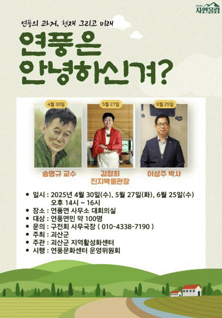 [NWS¹æ¼Û=Çѽ¸ñ ±âÀÚ]ÃæºÏ ±«»ê±º ¿¬Ç³¸é ¹®È­¼¾ÅͿÀ§¿øÈ¸´Â ¿À´Â 30ÀϺÎÅÍ 7¿ù 25ÀϱîÁö Áö¿ª ÁÖ¹ÎÀ» ´ë»óÀ¸·Î ´Ù¾çÇÑ Àι®ÇÐ °­ÀǸ¦ ¿î¿µÇÑ´Ù°í ¹àÇû´Ù. À̹ø ÇÁ·Î±×·¥Àº ¡°'¿¬Ç³ÀÇ °ú°Å, ÇöÀç, ±×¸®°í ¹Ì·¡'¿¬Ç³Àº ¾È³çÇϽŰÜ?¡±¡¦