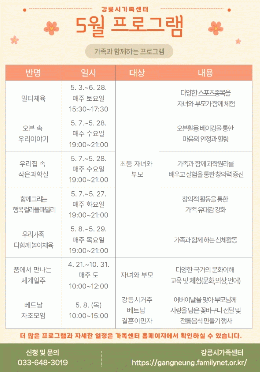 [»çȸ] °­¸ª½Ã°¡Á·¼¾ÅÍ, °¡Á·»ç¶ûÀÌ ³ÑÄ¡´Â 5¿ù °¡Á· ÇÁ·Î±×·¥ ÇѰ¡µæ |2025. 04.28