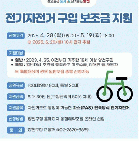 [»çȸ] ¾çõ±¸, Àü±âÀÚÀü°Å ±¸ÀÔºñ ÃÖ´ë 30¸¸¿ø Áö¿ø¡¦'ģȯ°æ À̵¿¼ö´Ü Ȱ¼ºÈ­' |2025. 04.28