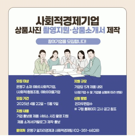 [»çȸ] ÀºÆò±¸, »çȸÀû°æÁ¦±â¾÷ »óǰ »çÁø¡¤¼Ò°³¼­ Á¦ÀÛ Âü¿©±â¾÷ ¸ðÁý |2025. 04.28