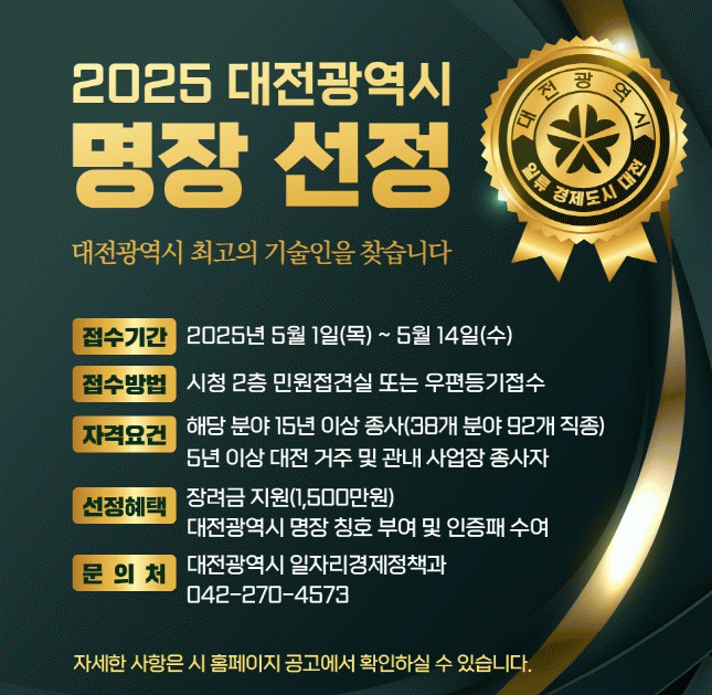 [»çȸ] 2025³â ´ëÀü±¤¿ª½Ã¡®¸íÀ塯¸ðÁý 5¿ù 1ÀÏ ½ÃÀÛ |2025. 04.28