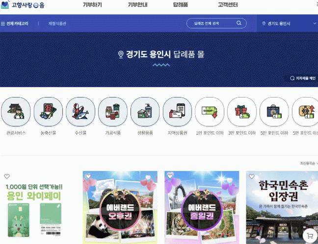 [NWS¹æ¼Û=Çѽ¸ñ ±âÀÚ]¿ëÀÎÆ¯·Ê½Ã´Â °íÇâ»ç¶û±âºÎÁ¦ Ȱ¼ºÈ­¸¦ À§ÇØ 8Á¾ÀÇ ´ä·ÊǰÀ» »õ·Ó°Ô ¼±º¸¿´´Ù°í 28ÀÏ ¹àÇû´Ù. °íÇâ»ç¶û±âºÎÁ¦ÀÇ È°¼ºÈ­¸¦ À§ÇØ ½Ã°¡ ´ä·ÊǰÀ¸·Î Ãß°¡ÇÑ »óǰÀº Áö¿ª ´ëÇ¥ °ü±¤ ¸í¼ÒÀÎ ¿¡¹ö·£µå¿Í Çѱ¹¹Î¼ÓÃÌ ÀÔÀå±Ç¡¦