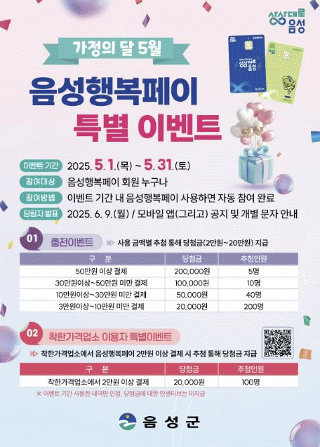 [»çȸ] À½¼º±º, 5¿ù À½¼ºÇູÆäÀÌ ±¸¸ÅÇѵµ 70¸¸¿ø »óÇâ µî À̺¥Æ® ÃßÁø |2025. 04.28