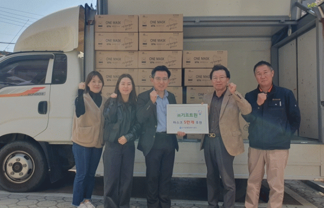 [NWS¹æ¼Û=Çѽ¸ñ ±âÀÚ]½ÃÈï½Ã ±ºÀÚµ¿¿¡ À§Ä¡ÇÑ ¢ß±âÇÁÆ®¿øÀÌ Ãë¾à°èÃþÀÇ Áúº´ ¿¹¹æÀ» À§ÇÑ KF94 ¸¶½ºÅ© 5¸¸Àå(2500¸¸¿ø »ó´ç)À» 25ÀÏ ±ºÀÚµ¿ ÇàÁ¤º¹Áö¼¾ÅÍ¿¡ ±âºÎÇß´Ù. ÈÄ¿øÇ°Àº ±ºÀÚµ¿¿¡ °ÅÁÖÇÏ´Â µ¶°Å ¾î¸£½Å, Àå¾ÖÀÎ, Àú¼Òµæ ¾Æµ¿ °¡¡¦