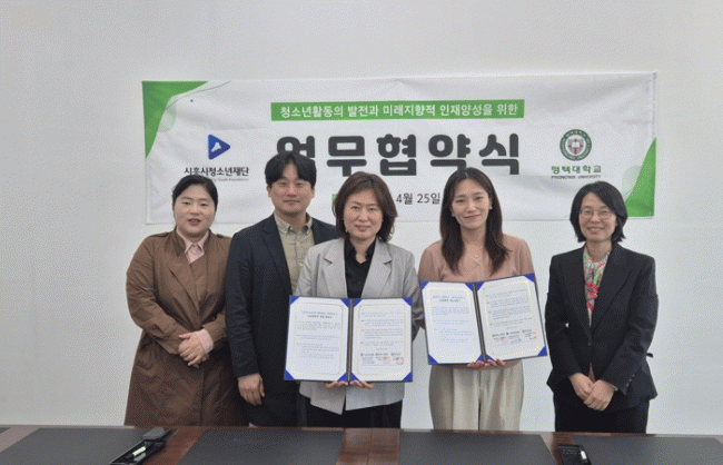 [NWS¹æ¼Û=Çѽ¸ñ ±âÀÚ]Àç´Ü¹ýÀÎ ½ÃÈï½Ãû¼Ò³âÀç´ÜÀº Áö³­ 4¿ù 25ÀÏ ¡®´ëÇлý Èıâû¼Ò³â ÀÎÅÏ½Ê ¾÷¹«Çù¾à¡¯À» ÆòÅôëÇб³(¾Æµ¿Ã»¼Ò³â±³À°»ó´ãÇаú), °æ±â´ëÇб³(û¼Ò³âÇÐÀü°ø)¿Í °¢°¢ ü°áÇß´Ù. À̹ø Çù¾àÀº ½ÃÈï½Ãû¼Ò³âÀç´ÜÀÇ Èıâû¡¦