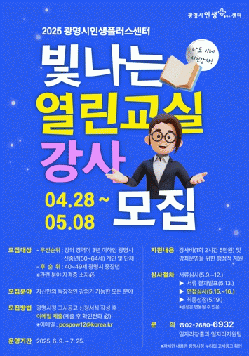 [»çȸ] ¡®½ÅÁß³â, °­»ç°¡ µÇ´Ù¡¯ ±¤¸í½ÃÀλýÇ÷¯½º¼¾ÅÍ,¡®ºû³ª´Â ¿­¸°±³½Ç¡¯°­»ç ¸ðÁý |2025. 04.27