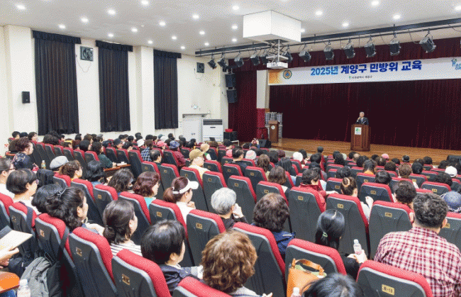 [NWS¹æ¼Û=Çѽ¸ñ ±âÀÚ]ÀÎõ±¤¿ª½Ã °è¾ç±¸´Â Áö³­ 23Àϰú 24ÀÏ ¾çÀϰ£ °è¾ç±¸ ¹Î¹æÀ§ ±³À°Àå¿¡¼­ Áö¿ª ¹Î¹æÀ§ ´ëÀå 540¿© ¸íÀ» ´ë»óÀ¸·Î ±³À°À» ½Ç½ÃÇß´Ù. À̹ø ±³À°Àº ¹Î¹æÀ§ ´ëÀåÀÇ ÀÓ¹«¿Í ¿ªÇÒÀ» ¼÷ÁöÇϰí, Àç³­.°ø½À µî ºñ»ó»óȲ ¹ß»ý¡¦